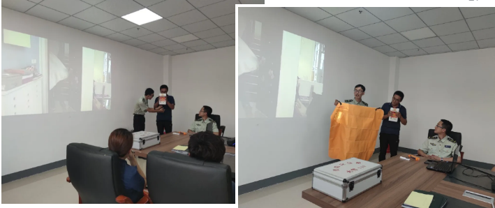 培訓(xùn)過(guò)程中,防火中心工作人員詳細(xì)的介紹了滅火毯、消防過(guò)濾式自救呼吸器、帶聲光報(bào)警功能的強(qiáng)光手電等消防器材的用途和使用,并向公司員工現(xiàn)場(chǎng)展示其正確使用方法,讓大家對(duì)火災(zāi)和消防有了更深入的了解。