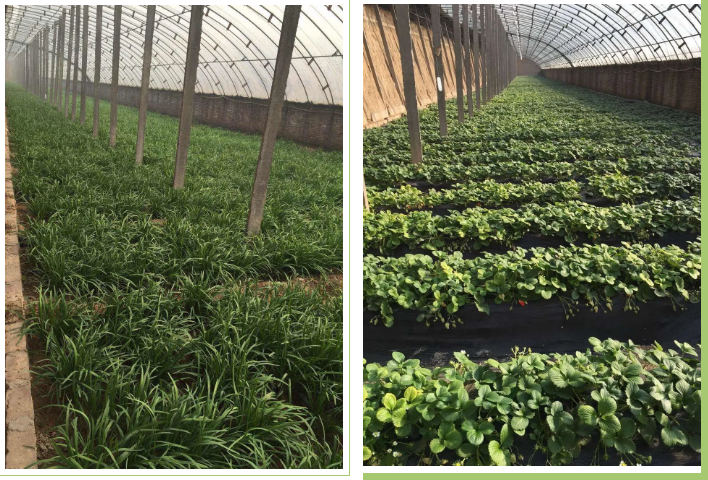 (上圖為基地大棚種植的韭菜、草莓)