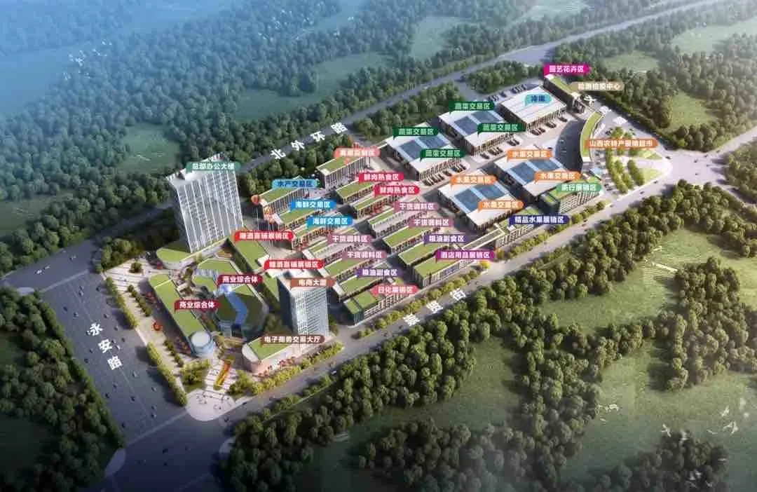 孝義農(nóng)產(chǎn)品大市場位于城市主干道永安路與崇賢街交匯處,項目總投資10億元,占地面積約220畝,總建筑面積約17萬㎡,涵蓋了農(nóng)產(chǎn)品交易區(qū)、農(nóng)特優(yōu)展銷區(qū)、商務(wù)辦公區(qū)、倉儲加工區(qū)、冷鏈物流區(qū)、配套服務(wù)區(qū)六大功能區(qū)。項目建成后,將成為集農(nóng)產(chǎn)品展覽交易、電子商務(wù)、電子結(jié)算、加工配送、凈菜加工、冷鏈物流、質(zhì)量檢測、信息發(fā)布、創(chuàng)業(yè)孵化、金融服務(wù)、休閑娛樂等功能為一體的現(xiàn)代化大型綜合服務(wù)平臺。