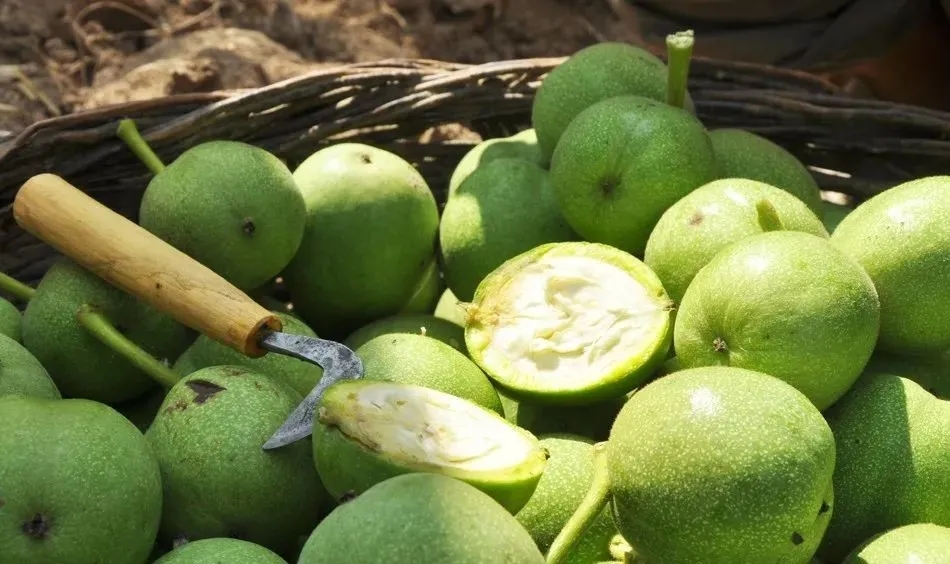 核桃有主副芽,上下各一個,上面出來長20公分,凍了,那么副芽出來坐果能力比較好,新品種里邊大多數(shù)都有這樣的一個特性,其他品種霜凍以后往往受到影響了,但該品種因為儲備的營養(yǎng)比較多,成長比較好,并且兼?zhèn)涓弋a(chǎn)穩(wěn)產(chǎn)的特點(diǎn),該品種果實殼面光滑美觀,殼厚1.2毫米,縫合線緊、不易開裂、易于加工,核仁呈淺色,味甜而不澀,易取整仁,且出仁率高達(dá)61%,市場價值極高,而且管護(hù)也很方便。