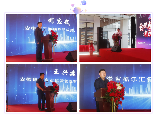 受邀出席本次活動的領(lǐng)導(dǎo)有新疆駐安徽工作組黨委書記陳翰林、安徽省統(tǒng)戰(zhàn)部非公經(jīng)濟處處長韓永龍、安徽省工商聯(lián)副主席司應(yīng)武、合肥市委書記辦公室主任夏躍民、合肥市審計局副局長張仁山、合肥市廬陽區(qū)商務(wù)局副局長朱駿、合肥福州商會秘書長陳可逸先生、安徽鼎鑫集團(tuán)總裁張曉東、安徽捷成商業(yè)運營管理有限公司總經(jīng)理王興建、安徽省酷樂匯餐飲管理有限公司總經(jīng)理甄勇,各位領(lǐng)導(dǎo)分別為本次開街儀式做開幕發(fā)言。