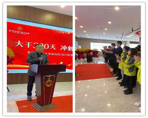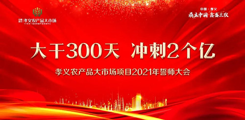 只爭朝夕,不負(fù)韶華,新征程,續(xù)輝煌。2021年3月1日,中鼎鑫農(nóng)·孝義農(nóng)產(chǎn)品大市場各位領(lǐng)導(dǎo)、員工、銷售精英齊聚展示中心,舉行“2021年開工誓師大會”,此次活動主題為“大干300天 沖刺2個億”!