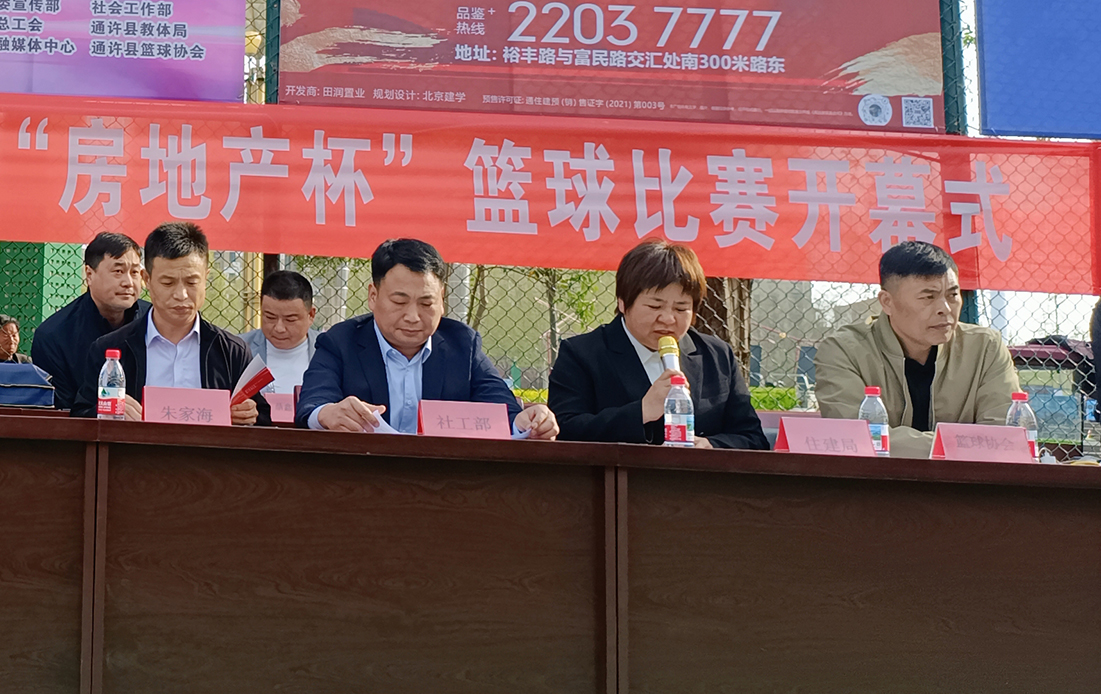 開幕式現(xiàn)場,開封市住建局副局長戚勇、通許縣領導朱家海等共同見證這一文體盛事??h住建局局長李娟作為主持,與縣委宣傳部、縣總工會、縣委社會工作部、縣融媒體中心、縣體育總會、縣籃球協(xié)會等承辦單位負責人齊聚一堂,鼎鑫·幸福滙作為通許縣重點項目之一,受邀參與此次盛會,項目負責人查顯楊作為代表參加了本次賽事的開幕式。政企協(xié)同的陣容彰顯著"體育搭臺、經(jīng)濟唱戲"的辦賽理念。