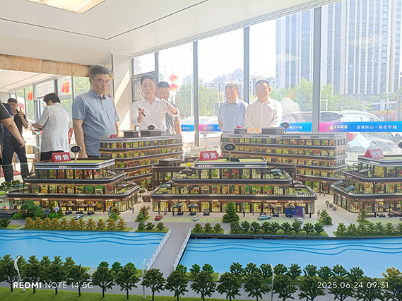 隨后又來到項(xiàng)目沙盤,講解員為一行人進(jìn)行詳細(xì)闡述,鼎鑫?幸福滙作為集現(xiàn)代化智慧農(nóng)貿(mào)市場(chǎng)與新生活購(gòu)物中心于一體的商業(yè)綜合體,其創(chuàng)新的商業(yè)模式與先進(jìn)的智慧化運(yùn)營(yíng)理念,吸引了領(lǐng)導(dǎo)們的高度關(guān)注。從智慧農(nóng)貿(mào)市場(chǎng)的智能溯源系統(tǒng),到新生活購(gòu)物中心的多元業(yè)態(tài)布局,每一處細(xì)節(jié)都展現(xiàn)著項(xiàng)目的獨(dú)特魅力與前瞻性。