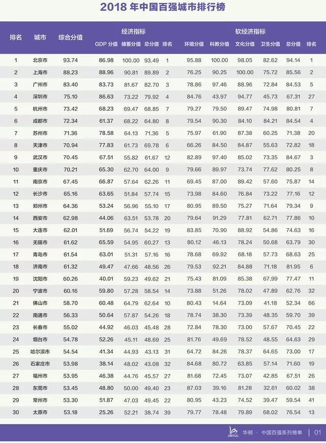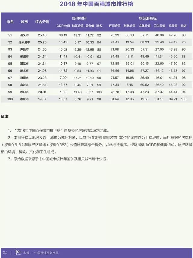 這是華頓經(jīng)濟研究院連續(xù)第四年編制發(fā)布“中國百強城市排行榜”數(shù)據(jù)。中國百強城市排行榜由經(jīng)濟和非經(jīng)濟(軟經(jīng)濟)兩大系列指標綜合而成,數(shù)據(jù)來源于國家統(tǒng)計局。其中,經(jīng)濟指標由GDP(國內(nèi)生產(chǎn)總值)和居民儲蓄兩部分構(gòu)成,占比61.8%,非經(jīng)濟(軟經(jīng)濟)指標由科教、文化、衛(wèi)生、生態(tài)環(huán)境四部分構(gòu)成,占比38.2%。據(jù)悉,今年是華頓經(jīng)濟研究院連續(xù)第四次發(fā)布年度中國百強城市排行榜。