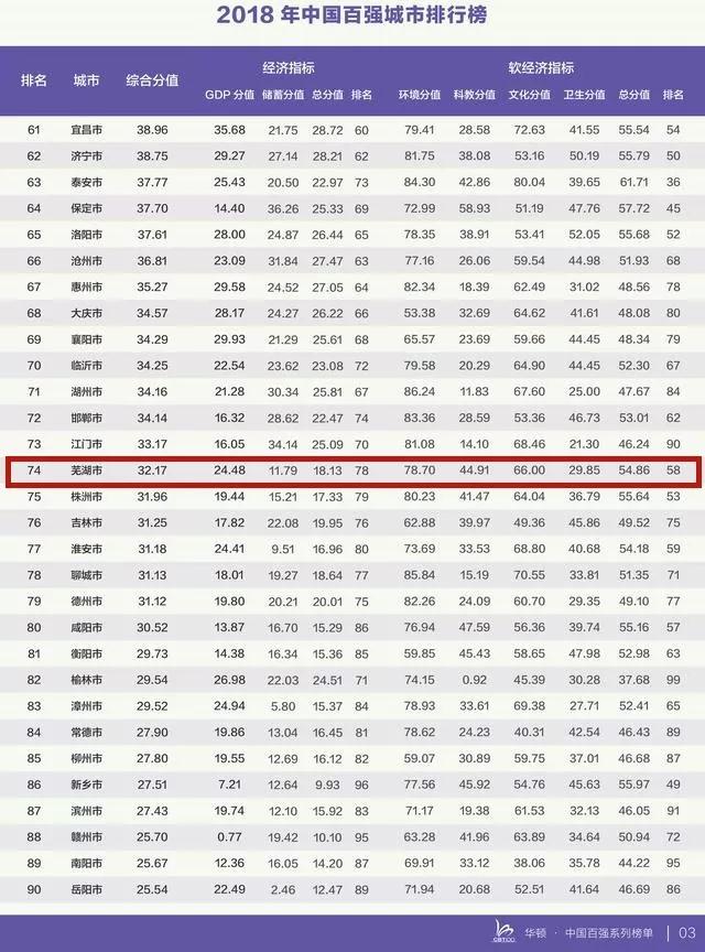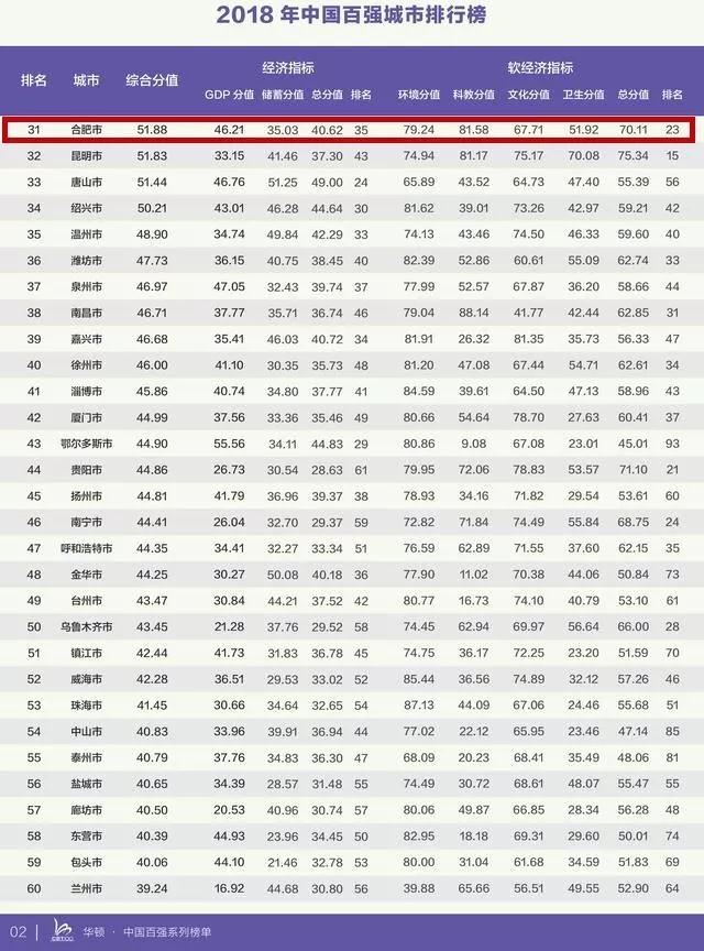 合肥市排名31 蕪湖市排名74