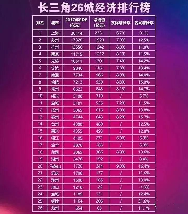 長三角地區(qū)26城的經(jīng)濟排名中,合肥2017年GDP達到7213億元,排名第8。