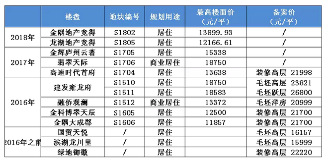 房價越來越高。由于2016年之前的三塊地,拿地價格較低,所以備案價格也都在20000元/平米以下。2016年之后出讓的土地,不論是裝修還是毛坯,無論是高層還是洋房,價格都已突破20000大關(guān)。跟樓面價一樣,房價漲上去就下不來了。