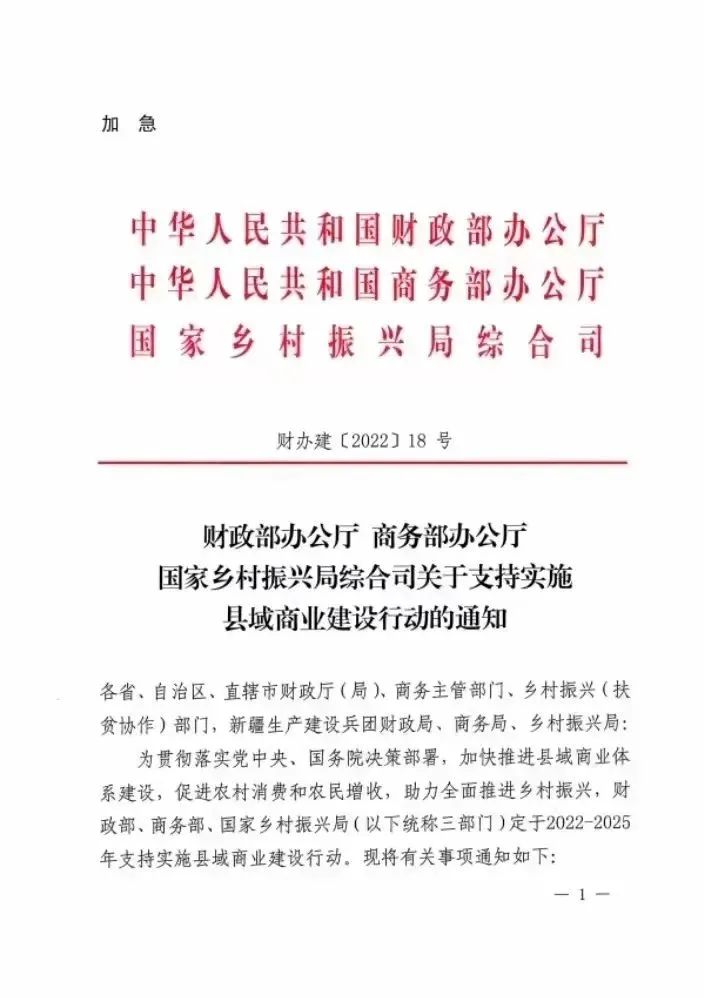 財政部、商務(wù)部、國家振興局關(guān)于支持實施縣域商業(yè)建設(shè)行動的通知