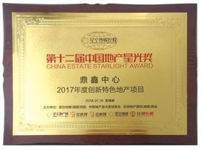 2018年1月,鼎鑫中心榮獲第十二屆中國地產(chǎn)星光獎